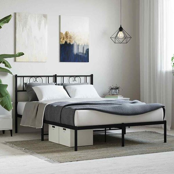 vidaXL Sängram med huvudgavel metall svart 135x190 cm