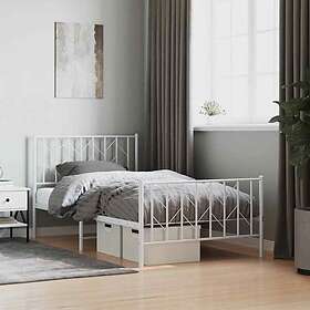 vidaXL Sängram med huvudgavel och fotgavel vit metall 100x190 cm