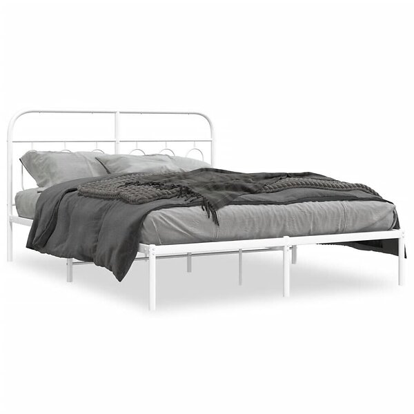 vidaXL Sängram med huvudgavel metall vit 135x190 cm