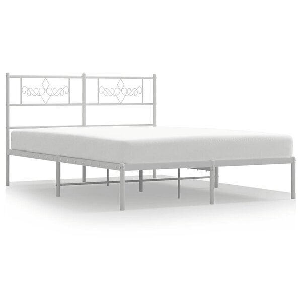 vidaXL Sängram med huvudgavel metall vit 120x190 cm