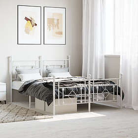 vidaXL Sängram med huvudgavel och fotgavel vit metall 135x190 cm