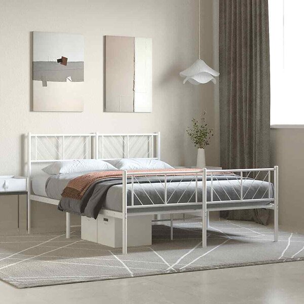 vidaXL Sängram med huvudgavel och fotgavel vit metall 140x190 cm