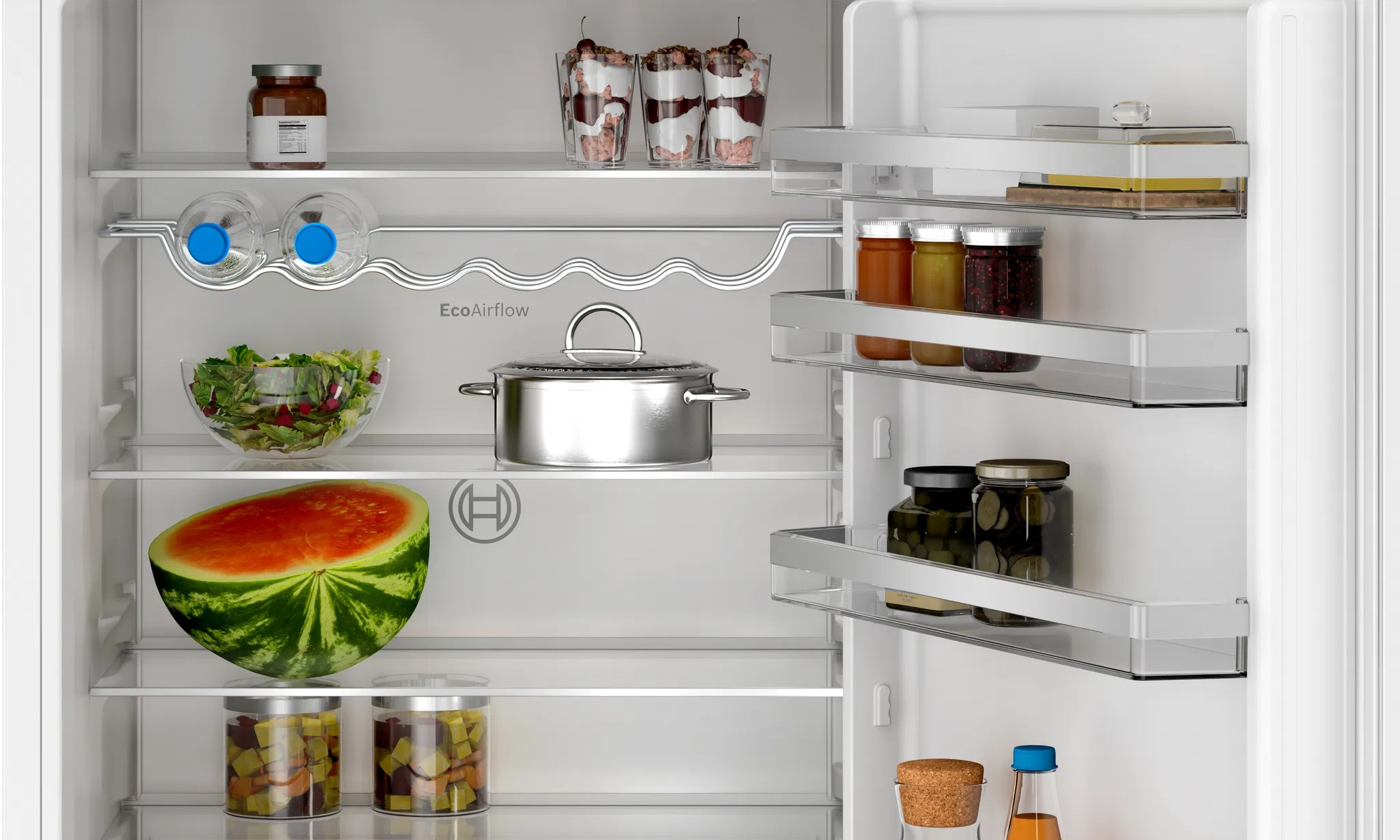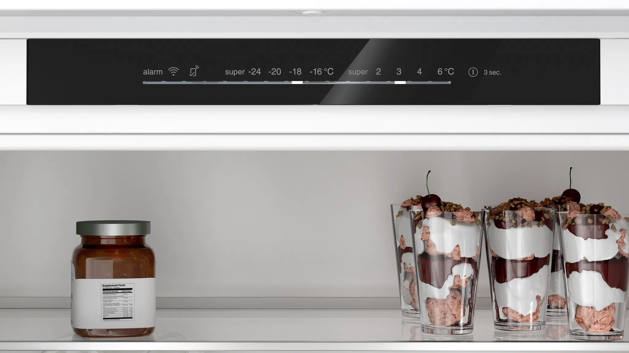 Døralarm, Hurtig køling, Isdispenser, Hurtig nedfrysning, Flaskeholder, Isbakke, Justerbar temperaturzone, Indbygget LED-belysning, Ferietilstand