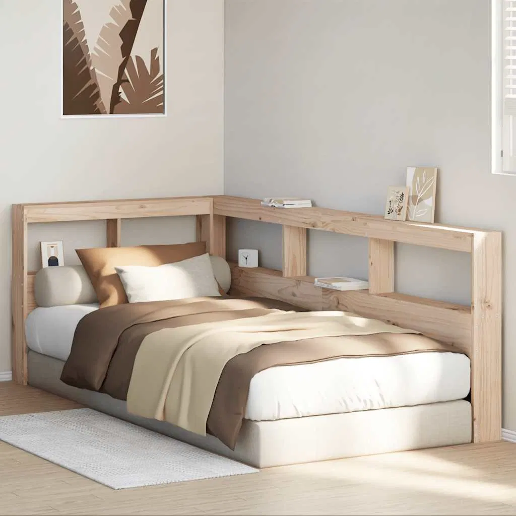 vidaXL Bokhylla sänggavel L-formad 80 cm massiv furu