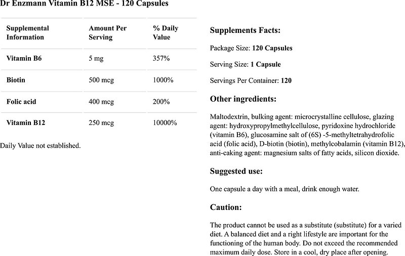 Dr. Enzmann Mse Vitamin B12 Mse 250 Mcg 120 Capsules