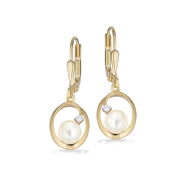 Scrouples 8 karat guld Örhängen Med Zirconia Och Sötvattenspärlor