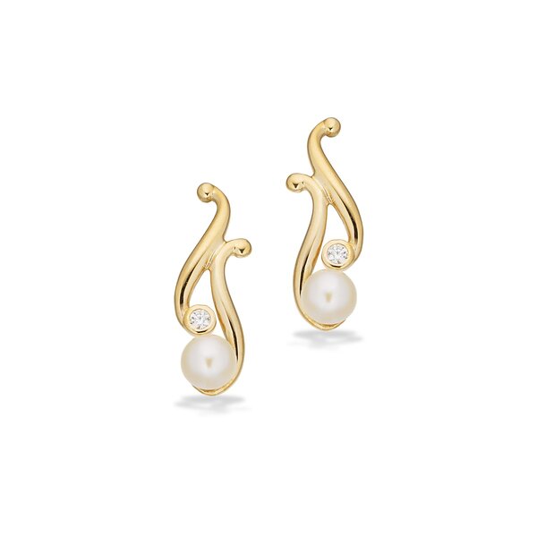 Scrouples 8 karat guld Örhängen Med Zirconia Och Sötvattenspärlor