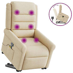 vidaXL Massagefåtölj med uppresningshjälp gräddvit tyg