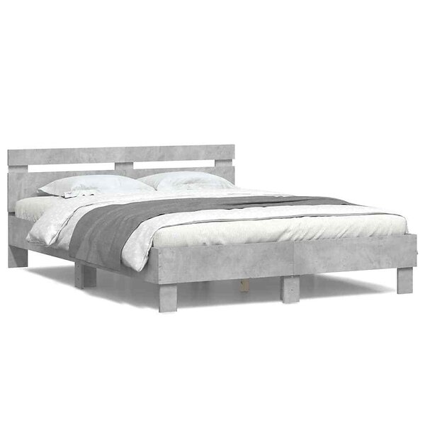 vidaXL Sängram med huvudgavel och LED betonggrå 150x200 cm