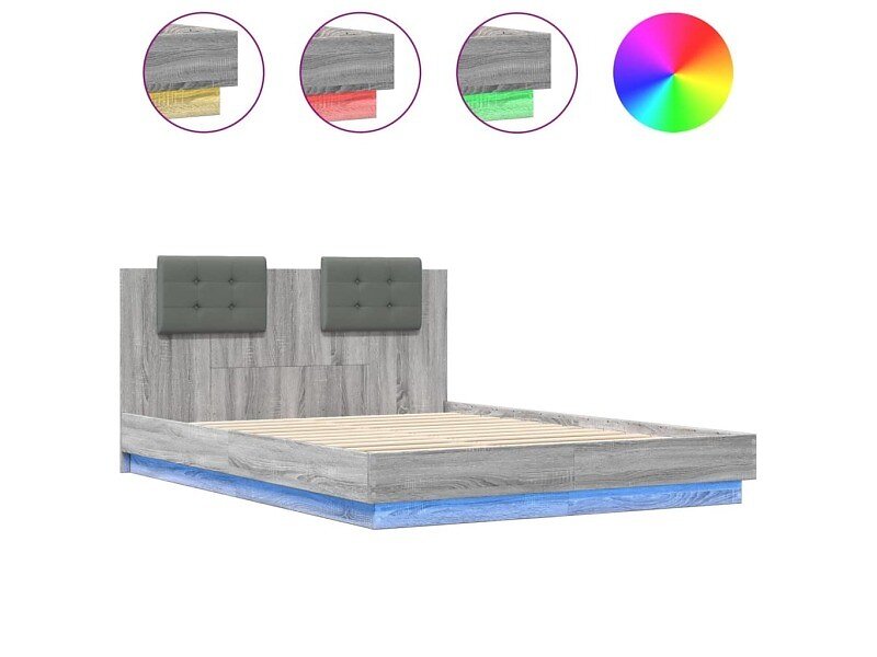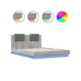 vidaXL Sängram med huvudgavel och LEDs grå sonoma 150x200 cm