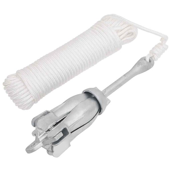 vidaXL Hopfällbart ankare med rep silver 6kg varmförzinkat gjutjärn