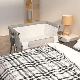 vidaXL Babysäng med madrass ljusgrå linnetyg