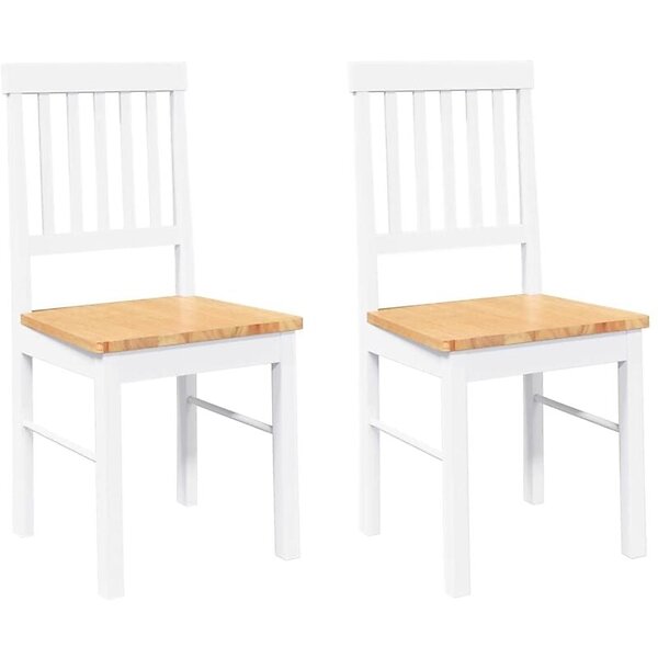vidaXL Matstolar med dynor 2 st, vit, massivt trä, gummi