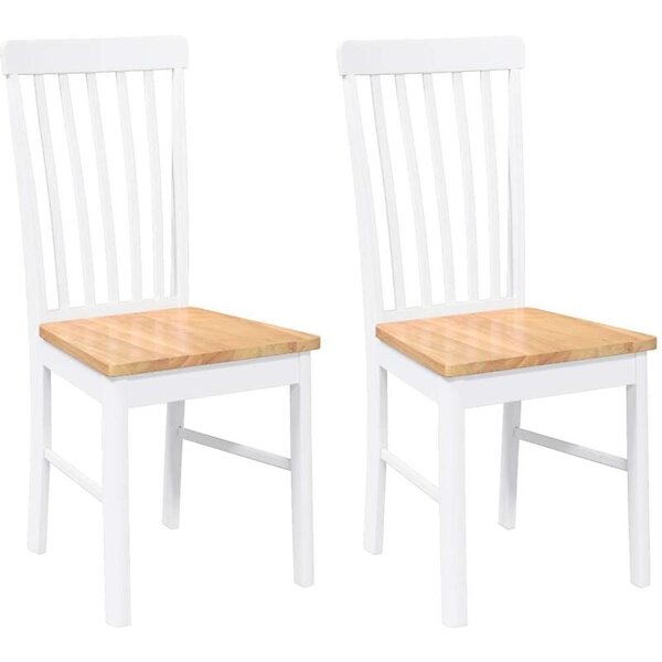 vidaXL Matstolar med dynor 2 st, vit, massivt trä, gummi
