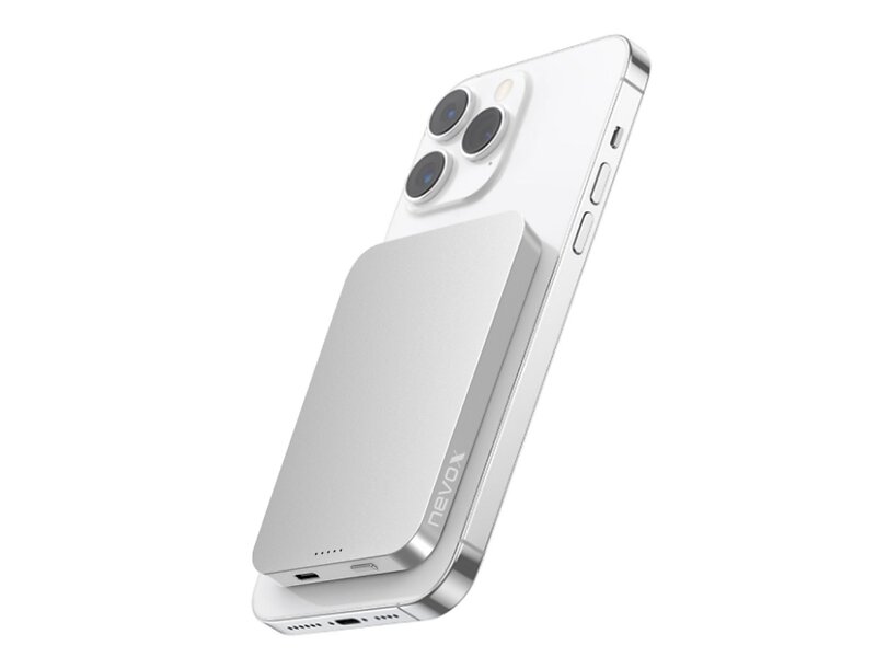 nevox PB-2292 powerbank Lithium polymer (LiPo) 5000 mAh Trådløs opladning Sølv, Hvid