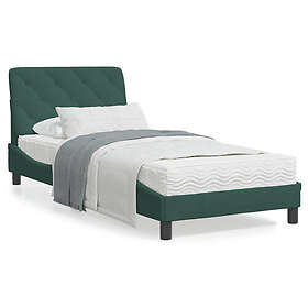 vidaXL Sängram med LED-belysning mörkgrön 90x200 cm sammet