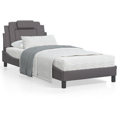 vidaXL Sängram med LED-belysning grå cm 90x190 konstläder