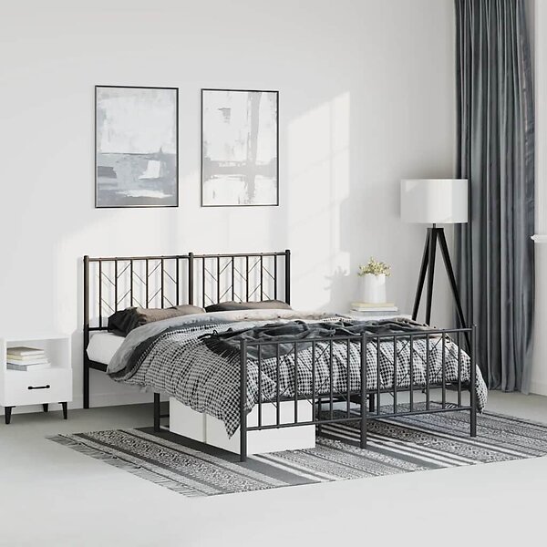 vidaXL Sängram med huvudgavel och fotgavel svart metall 150x200 cm