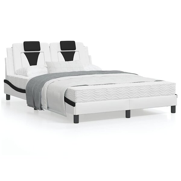 vidaXL Sängram med huvudgavel vit och svart 140x190 cm konstläder