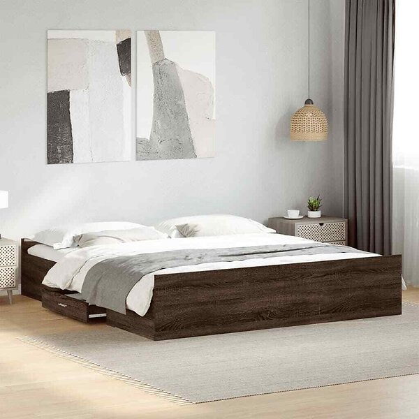 vidaXL Sängram med lådor brun ek 180x200 cm konstruerad trä