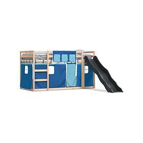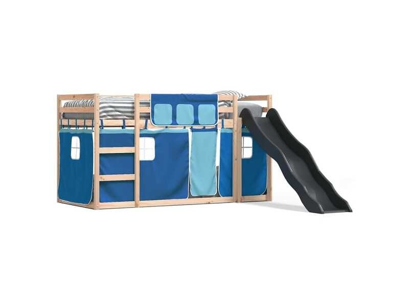 vidaXL Våningssäng med rutschkana och gardiner blå 90x190 cm