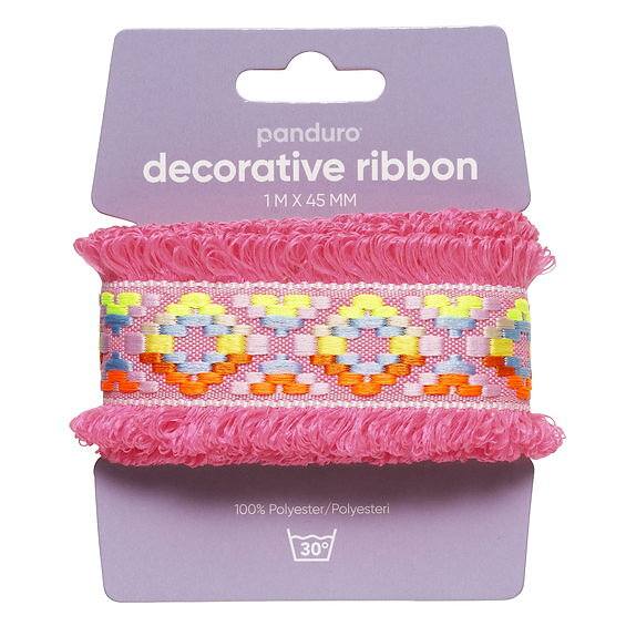 Panduro Hobby Dekorband med härligt rosa fluffiga fransar 1 m långt, 45 mm brett