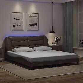 vidaXL Sängram med LED-belysning brun 180x200 cm konstläder