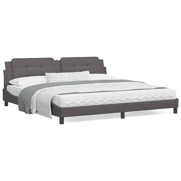 vidaXL Sängram med huvudgavel grå 200x200 cm konstläder