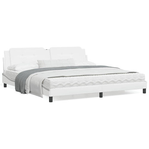 vidaXL Sängram med huvudgavel vit 200x200 cm konstläder