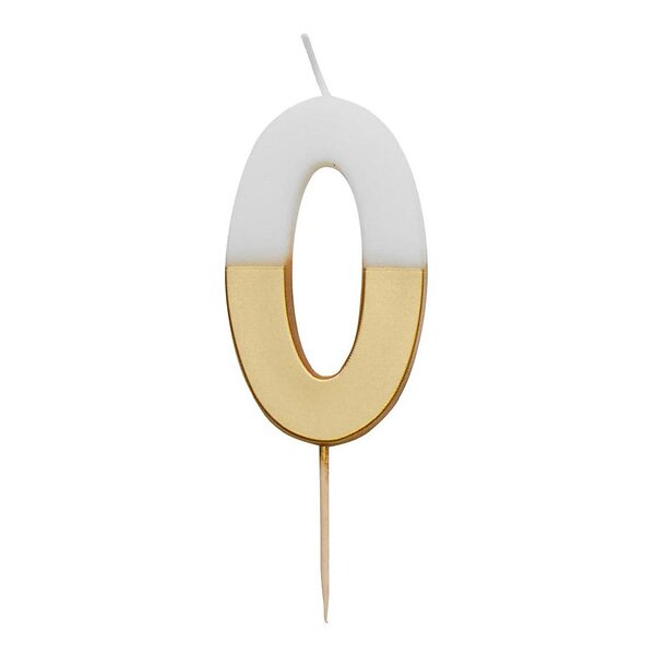 Tårtljus Siffra Guld/Vit Siffra 0