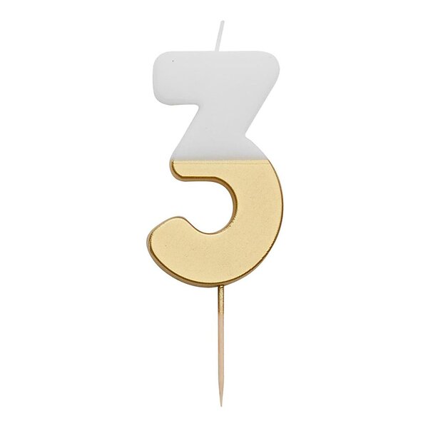 Tårtljus Siffra Guld/Vit Siffra 3
