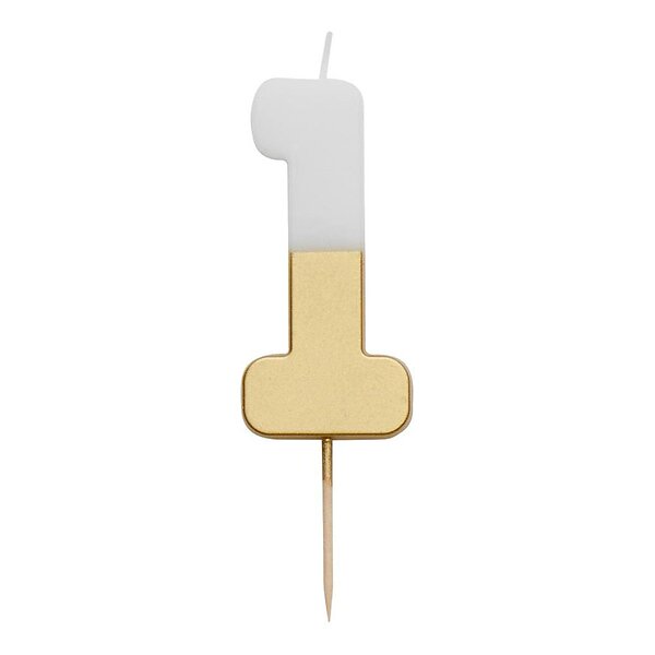 Tårtljus Siffra Guld/Vit Siffra 1