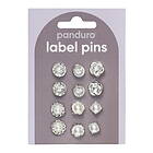 Panduro Hobby Pins, badges, 12 st. härligt silvriga & gnistrande små mini-broscher Ø10-12 mm