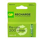 GP Batteries Recharge Rechargeable Battery, Size AAA, 650 mAh, 4-pack