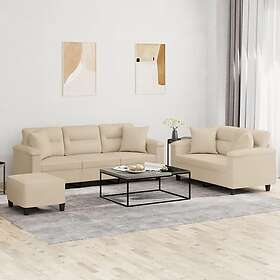 vidaXL Soffgrupp med kuddar 3 delar Gräddvit mikrofibertyg