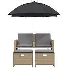 vidaXL Trädgårdssoffa 2-sits med parasoll&pallar beige konstrotting 365887
