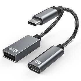 NÖRDIC USB-C hub 2 portar 1x USB-A 2,0 1x USB-C PD 3,0 60W