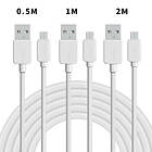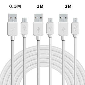 NÖRDIC USB2.0 A hane till Micro B hane Kabelkit 3-pack 0,5m+1m+2m 480Mbps 2,4A vit för Android mobiler och surfplattor