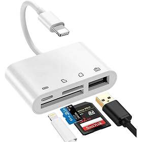 NÖRDIC Lightning Kortläsare 2 Slot SD, MicroSD 1xUSB-A, 1xUSB-C Laddning UHS-I