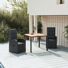 vidaXL Matgrupp för trädgården med dynor 3 delar svart konstrotting 3157597