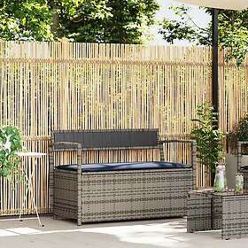 vidaXL Förvaringsbänk för trädgård med dyna grå konstrotting 4103843