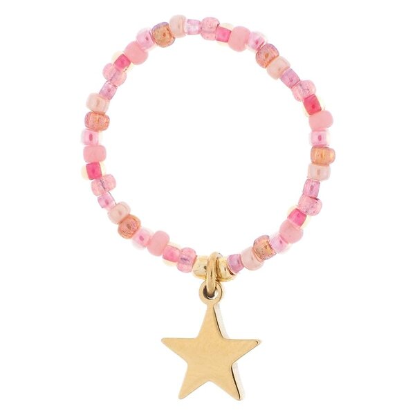 Dark Glass Bead Ring 2mm With Charm Rose Mix With Star Charm