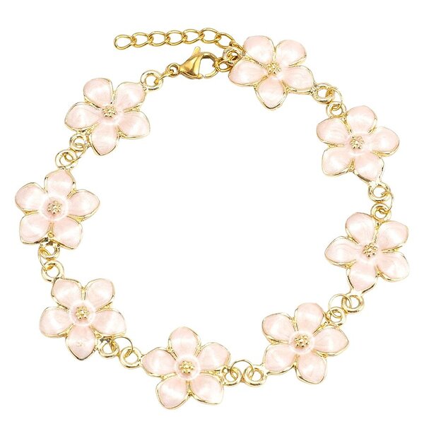 Timi Of Sweden Adeline Pink Enamel Flower Chain Bracelet