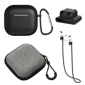 MTK För AirPods 4 5st Tillbehör Fodral förvaringsbox halsrem hörlurshållare nyckelring Svart