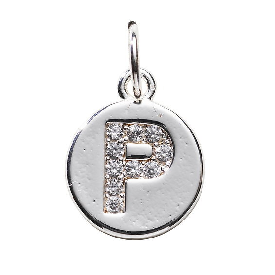 Panduro Hobby Bokstavshänge cirkel strass P – Ø12 mm, mässing pläterat med 925 sterling silver
