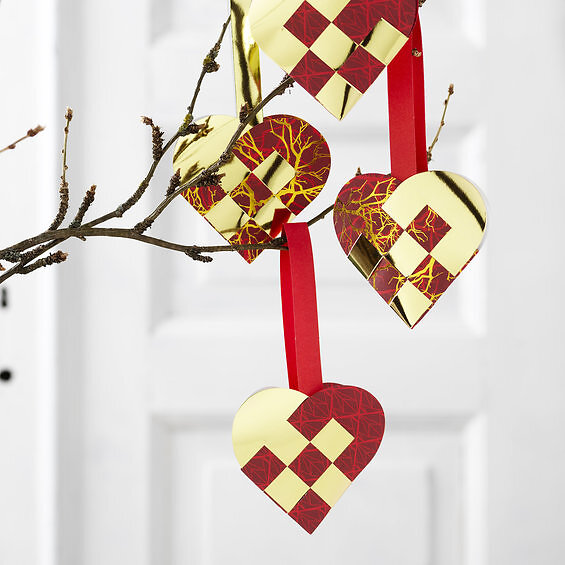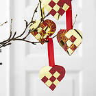 Panduro Hobby Fläta julhjärtan pappershjärtan 8-pack, guldigt (metallic-foil) & rött