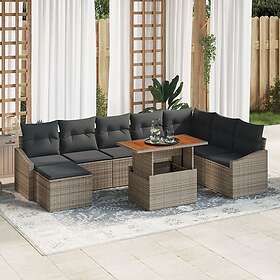 vidaXL Loungesæt 9 dele med hynder grå polyrattan akacie