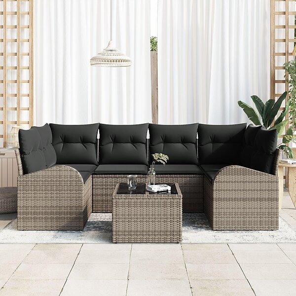vidaXL 7-delat trädgårdssoffset med kuddar grå poly rotting