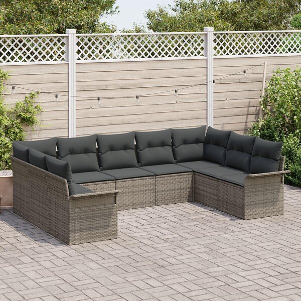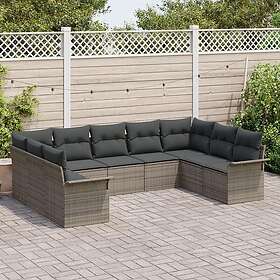 vidaXL Lounge Sæt 9 Stykker med Hynder Grå Poly-rotting