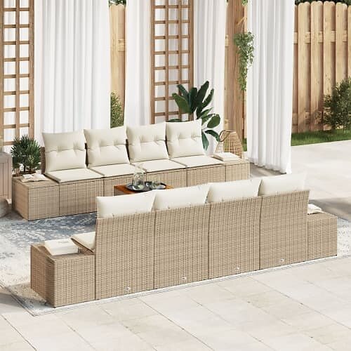 vidaXL Lounge Set 9 Stykker med puder beige polyrattan akacie